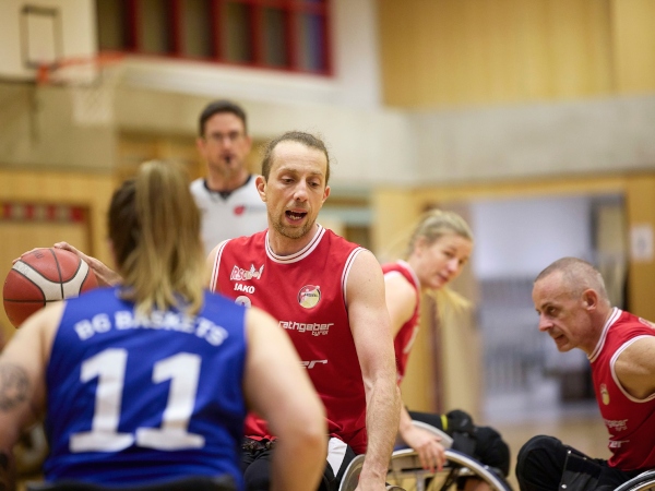 Mit 62:79 (31:45) mussten sich die Tiroler Rollstuhlbasketballer am vergangenen Samstagabend den BG Baskets Hamburg geschlagen geben. Trotz der deutlichen Niederlage zeigte der RSC Tirol eine kämpferische Leistung und konnte den favorisierten Gästen phasenweise Paroli bieten.