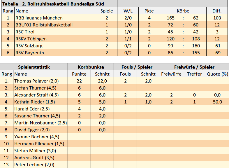 Das Rollstuhlbasketballteam des RSC Tirol konnte das erste Spiel der 2. Bundesliga Süd Saison 2021/22 gegen RSKV Tübingen knapp mit 45:42 gewinnen. Der Score gleicht eher einem Halbzeitergebnis, ist jedoch tatsächlich das Endergebnis. Man könnte dieses Spiel als wahre Verteidigungs-Schlacht verkaufen, allerdings würde diese Aussage schlicht und einfach nicht stimmen. Es schien als ob die Körbe in der Wörgler Halle, auch bei einfachen Abschlüssen, irgendwie verflucht worden sind. Enorm viele Fehlwürfe scheinen auf den Statistiken beider Teams auf, beide Mannschaften konnten zusammengerechnet nur 35% ihrer Würfe versenken.