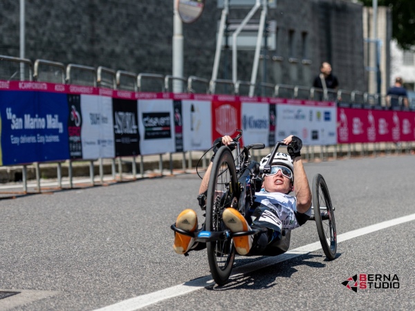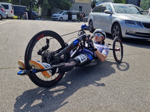 Am 12.05.2024 startete unser Handbiker Benjamin Hundsbichler bei der zweiten Etappe der Giro Handbike Italia in Triest. Dieser hatte die Ehre das weiße Trikot (Führendentrikots des besten Nachwuchsfahrers) zu tragen, welches es zu verteidigen gegolten hat. Auf dem selektiven Stadtkurs über zwei Anstiege und einer Abfahrt über Kopfsteinpflaster konnte Benjamin seine Leistung voll abrufen. Leider war die Konkurrenz auch stark und somit klappte es mit der Titelverteidigung des Trikots leider knapp nicht. Jedoch ist Benjamin dennoch zufrieden mit dem Rennwochenende, da die persönliche Leistung immer weiter nach oben geht.