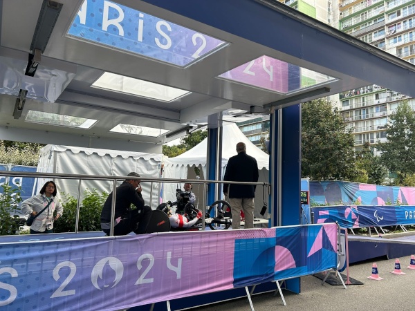 Epische Regenschlacht im Para-Cycling bei den Paralympischen Spielen PARIS 2024. Der Start des Rad-Straßenrennens der Damen (H1-4) musste aufgrund des starken Niederschlags um eine Stunde nach hinten verschoben werden, um 10:35 Uhr ging es für Svetlana Moshkovich und Cornelia Wibmer in Clichy-sous-bois auf die 28,2 Kilometer.