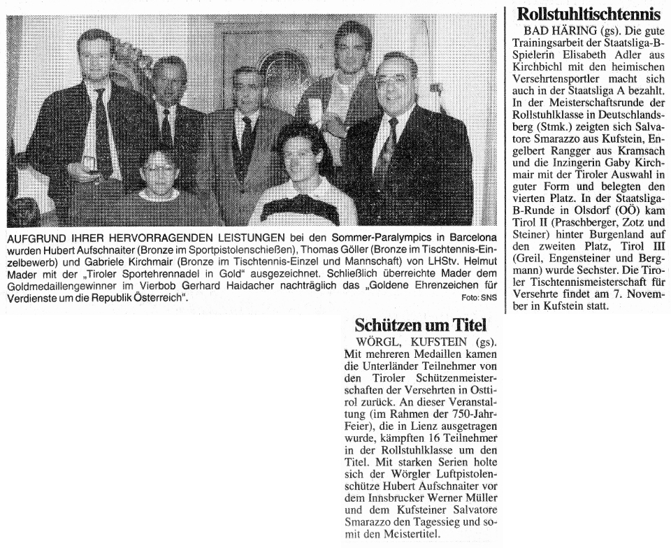 Zeitungsberichte 1992