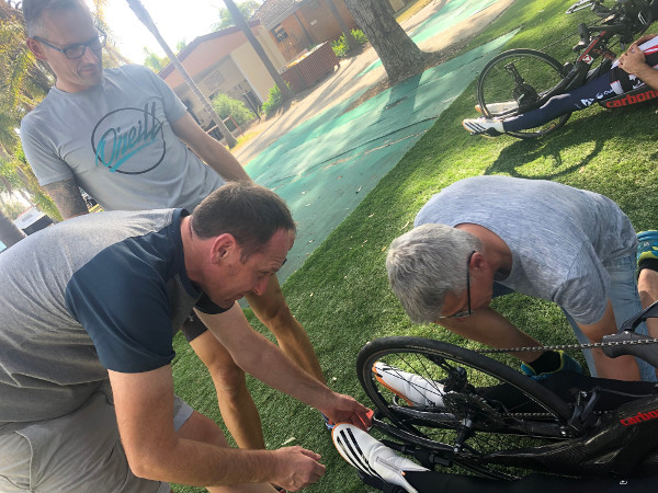 Wolle, Alex und Mike machten eine Ausfahrt, Wolfi fährt jetzt noch gleich mit einem Supportteam die Strecke in der Nacht ab (Ortszeit 22.00 Uhr) und testet auch die Beleuchtung der Bikes in der Nacht.