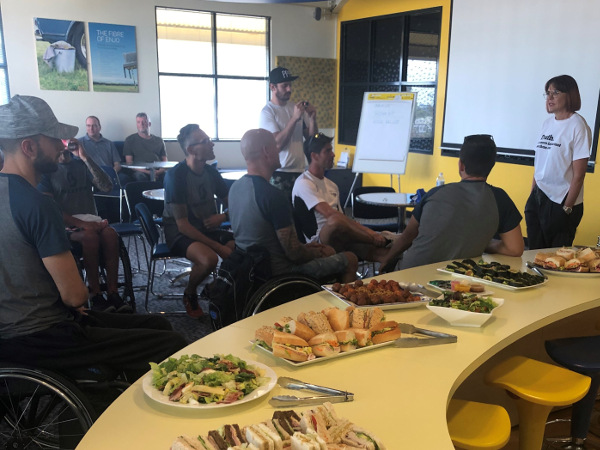 Zu Mittag hatten wir eine Einladung bei Enjo Australien. Gestern konnten wir ja die Räder bei ihnen im Lager abholen, für heute luden sie uns zum Essen ein. Wir wurden wunderbar verköstigt, führten nette Gespräche und gaben ein Interview.