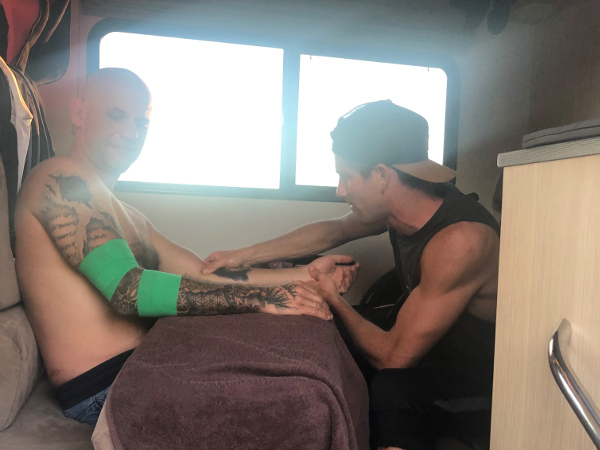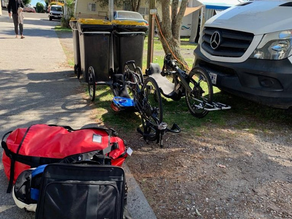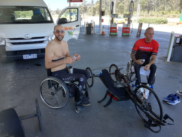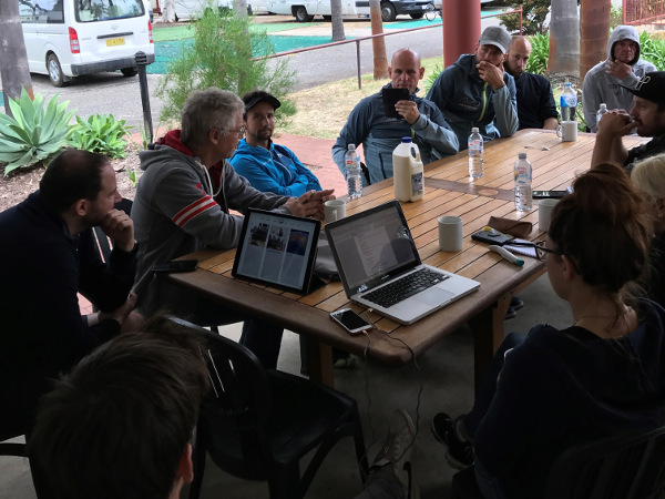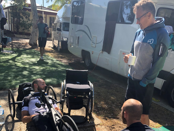 Am Nachmittag wurden die Fahrer von unseren 2 Physios im Hotel behandelt, das restliche Team hatte ein paar Stunden Freizeit, welche man für einen Spaziergang oder eine kurze Abkühlung im Pool nutzen konnten. Im Kopf ist man aber eigentlich immer beim Projekt. Beim Spazierengehen werden die Radfahrer aufgehalten und nach den besten Radwegen gefragt, im Pool wird mit den Menschen gesprochen und vom Projekt erzählt. Die Australier sind wirklich begeistert, wir konnten schon einige Kontakte knüpfen und haben sogar eine Spende in die Hand gedrückt bekommen.