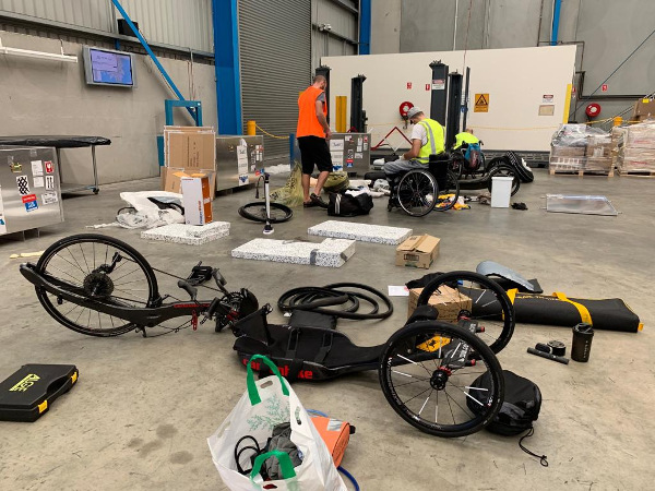 So nun ist es soweit, das Material (Bikes, Zeitnehmung und Zubehör) machen sich auf den Weg nach Perth-Western Australia. Was andere Speditionen in 9 Monaten nicht geschafft haben, schaffte Gebrüder Weiss in nur 24 Stunden!